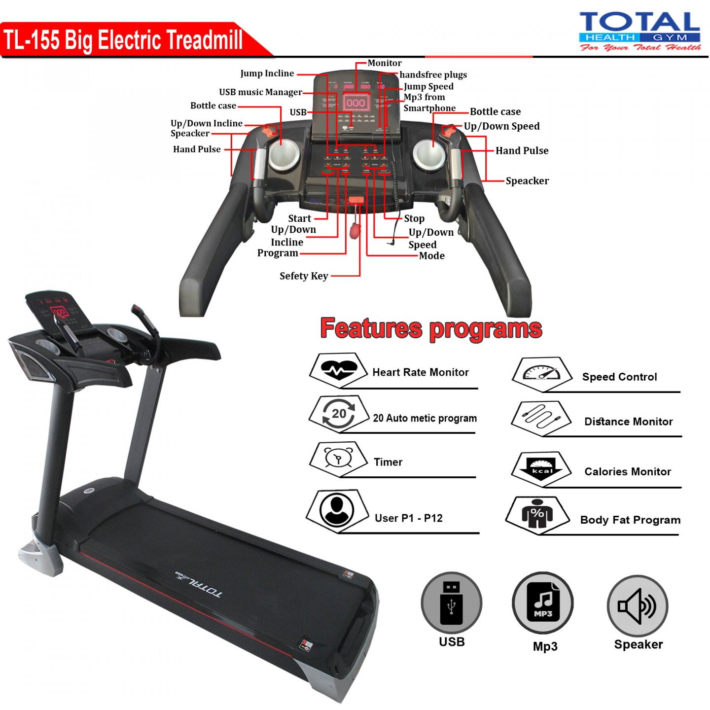 Treadmill Elektrik 2 fungsi ini merupakan inovasi terbaru . Treadmill ukuran minimalis dengan tampilan console yang sangat berkelas. Dilengkapi dengan fitur massager yang berfungsi untuk membakar lemak pada perut dan pinggang Anda. Selain itu terdapat MP3 dan USB untuk memainkan lagu kesukaan Anda.